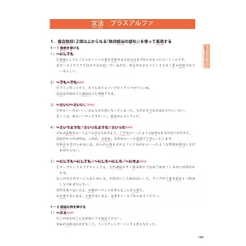 【文法練習】:各課文法要點均以「句型」形式列出,透過練習讓您了解句型實際運用的型態、接續方法等,簡潔明瞭。