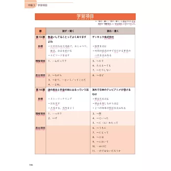 附錄:漢字、會話表現;每課目標學習項目參照。