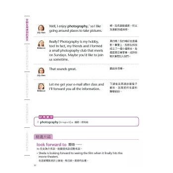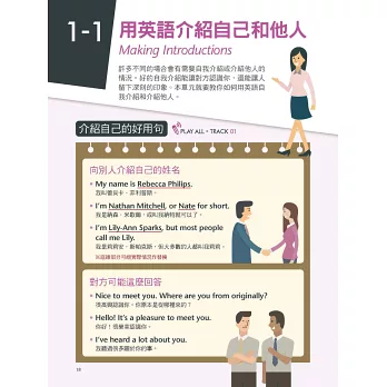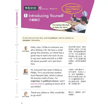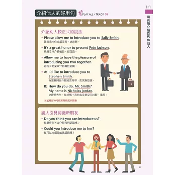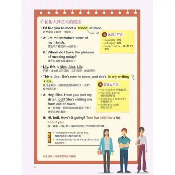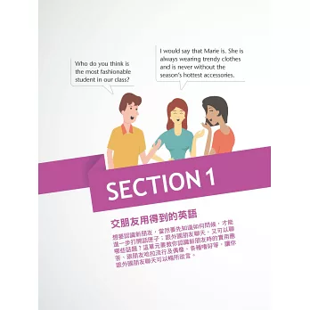 收錄交朋友、社交場合、日常生活、學校及工作用得到的各種主題。