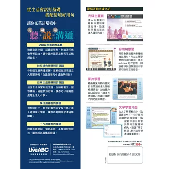 本書所搭配的互動光碟,請來以英語為母語的專業老師為大家示範每個句子的念法,不僅訓練英語聽力,更可跟著朗讀MP3學習及模仿純正的口音,除了互動光碟,本書也支援點讀筆功能,隨點隨讀方便有效率。有效運用這兩大學習工具,不僅學得快也學的好,讓你在食衣住行各種場景都能流利的用英語與他人對談。