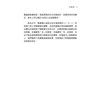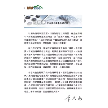 有了完整的經驗及良好的邏輯思考,這樣的基礎有助於建構交易員更好的心理素質。交易是否能成為真正的贏家,心理因素占了很大的比重,但它也並非一蹴可幾,終究必須歷經實戰經驗、歷史磨練及邏輯演化。《陷阱分析法》結合理論與實務,內容含括海外期貨市場分析、台灣期貨及選擇權分析以及選股邏輯等等,有助於讀者在最短的時間內,實際快速累積作者近二十年的經驗,在此推薦給大家。
