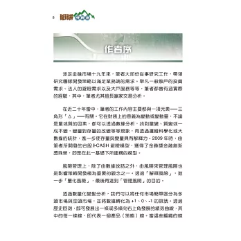 從一個交易人的立場來看,推薦本書有二個理由,其中第一個就是人。作者在金融市場累積了多年的經驗,懂的就說懂,不懂的就說不懂,不會不懂裝懂,是個挺務實的人,在我的印象中,他不會特別講你愛聽的話,因此總能站在中立的立場客觀地分析。另一個推薦的原因則是邏輯及觀念。我常會聽到許協理談到「翹翹板」關係、行情與事件的連結,足見其看法有其深厚的研究底子。對於市場的分析,每個人都會有主觀的意識成份,但如果能融入數據、事件及市場結構等等客觀的分析,就具有很高的說服力。作者可以說是「關係專家」,相信在本書中,讀者可以學到很多他寶貴的經驗。