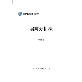 除了歷史之外,理解歷史事件背後主導的「邏輯」也很重要。正確的邏輯帶你上天堂,錯誤的邏輯帶你下地獄。《陷阱分析法》將一般市場上特別容易產生的陷阱加以分類,諸如資訊陷阱、邏輯陷阱、互動關係陷阱、制度陷阱等等,並利用近年來大家熟悉的案例及淺顯易學的價格分析邏輯或方法,對不同的陷阱做了完整的解讀,希望能夠讓讀者了解陷阱、避免陷阱,進而利用陷阱、規避風險,更進一步創造獲利。
