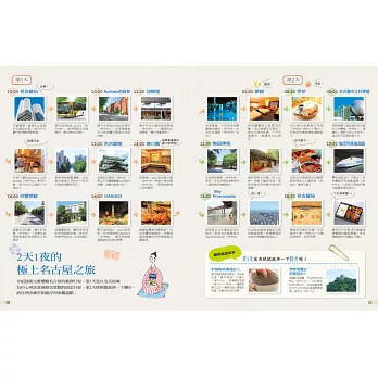 本書提供來自日本最新的旅遊資訊、以及詳盡正確的地圖之外,書籍內容推薦讀者可前往的名店、住宿點及交通方式,從平價到高消費都包含在內,讓旅客可依自己的預算,做出最適合的行程安排。在名古屋各地遍嘗美食、名產,遊逛各處名勝、博覽觀光,讓本書作你日本旅遊的最好嚮導。特別附贈15頁的地圖小冊,方便你隨身攜帶,旅遊日本趴趴走。