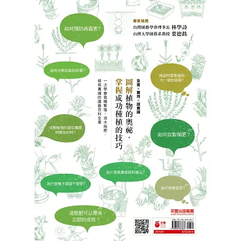 不管是草花、蔬果、觀葉盆栽、球根植物等等,一本涵概各種植物的栽種養護技巧,為全面性的栽種指南。