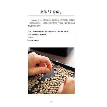 在日本被喻為咖啡之神的本書作者‧田口護,以推廣咖啡為畢生志業。為了讓更多喜愛手沖咖啡的朋友習得「濾紙式手沖咖啡」的萃取技術,將其自身經營咖啡店四十年來的經營理念與手沖咖啡萃取技術,透過淺顯易懂的圖文對照解說,將他對於手沖咖啡的美味堅持,毫無保留地傳授並凝縮成冊。