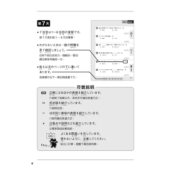按照本書安排進度,「一天20分鐘、15道題」即可完成4週密集衝刺。重要觀念、關鍵字詞反覆出現,徹底吸收新日檢考題精華。