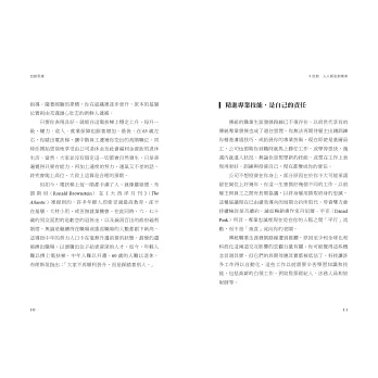 而接下來「年輕人難以擠上電扶梯,中年人難以升遷, 60歲的人難以退休」,導致了「大家不再順利晉升,而是踩踏著別人」的觀察,一針見血地道破這個時代職場的困境。該怎麼辦?作者有他的想法,有他的解答。