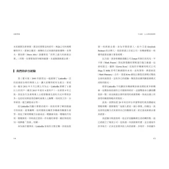 從蘋果電腦的使用者體驗部門開啟了他的職涯冒險,在富士通探索產品經理的事業抱負後,創立了他的第一家網路公司SocialNet,並在加入PayPal 蓄積能量後,創立全球最大的專業社群網站 LinkedIn。不像典型的矽谷車庫傳奇,霍夫曼更像是一個由點滴累積、適應轉變而獲得成功果實的創業修練者,也因此更值得你我這樣的創業者一讀。