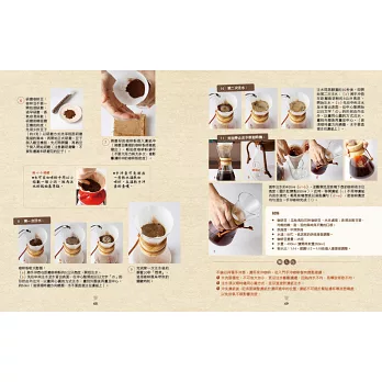 其中,更加入台灣優質咖啡莊園介紹,除了介紹各莊園的咖啡豆後製處理手法外,更揭露各家「獨門」手沖技法,讀者可享受臨摹各家手沖咖啡技法的樂趣。