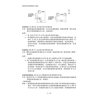 六、本次排版除字體加大外,並以B5 紙張(19×26cm)之大小出版印刷,以方便讀者攜帶及閱讀;另本彙編日後將視內政部營建署公告新解釋函(令)之多寡,不定期重新編輯出版。