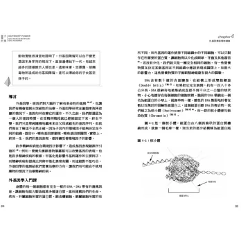 回頭來看,我們看到了過去單純使用藥物的不足,但這多少有點後見之明,因為醫學的真正最大突破是在這二十年左右,其中之一就是本書作者反覆提到的外基因學(epigenetics),對許多人而言,這是一個陌生的名詞,基因學聽過,那「外」基因學是什麼?當一九五三年華生跟克利克發現了DNA 的雙股螺旋結構,我們一度以為所有生命的祕密都將解開,可以找到疾病的編碼,找到那個醫師口中常常出現的生病原因:「體質」,但是在二○○二年,堪比登陸月球的人類基因定序計劃完成後,科學家很訝異地發現: