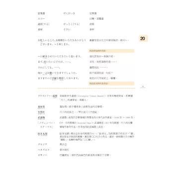 藉由主教材以外的學習輔助,幫助學習者有系統地串連主教科書上的學習項目,掌握其訣竅!遇到不懂的文型表現及含義,可隨時參照書中解說和中譯,讓您在學習上更加得心應手!