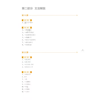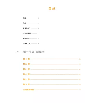 列出各課及文法補充項目的「新單字」、「口語表達」、「專有名詞」,並依其出現的先後順序排列,幫助您掌握新單字含義,進而靈活運用於接下來的學習項目!