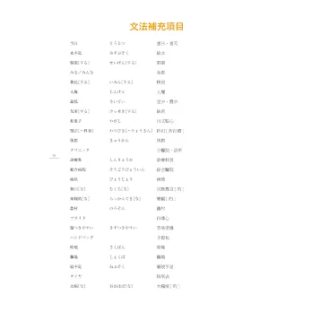 完整收錄主教科書裡文法補充項目的中文翻譯,及各文法、句型的意思及語言功能,滿足學習者求知心,並幫助學習者銜接高級日語。