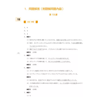 (1) 教科書中「文法.練習」、「聽與說」、「讀與寫」等單元的練習題及「聽力問題」的解答。(練習題部分舉出的答案為參考範例)