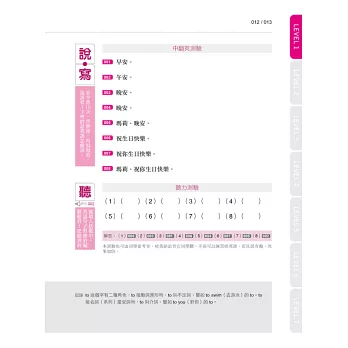 LEVEL 1 問候、電話用語、命令句與祈使句、介詞的用法等