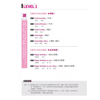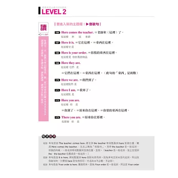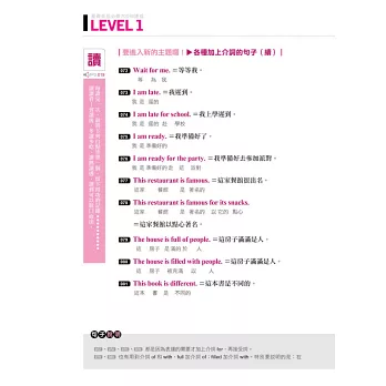 ★分類最有系統:全書分成LEVEL 1~LEVEL 7,由淺入深,循序漸進,學習最踏實!句子還依主題分類,學習有系統;複習或補強時也可參照主題,學習最便利!