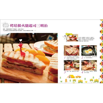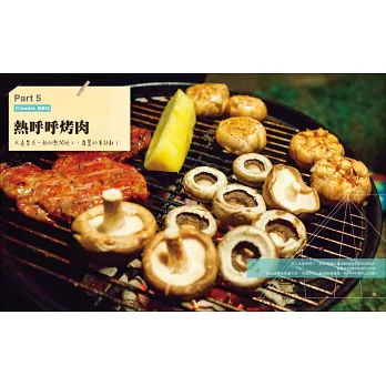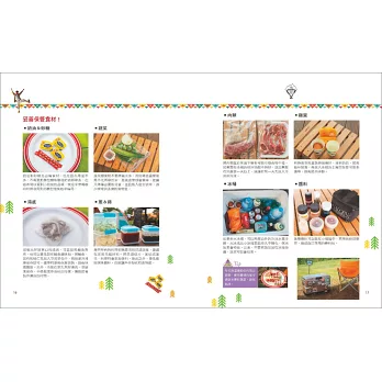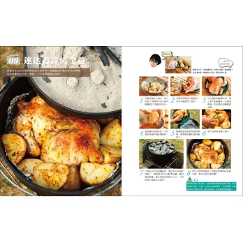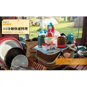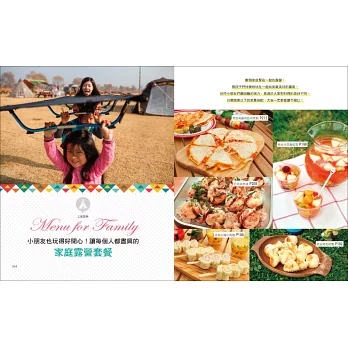 這本書中有剛抵達露營場地時可以快速完成的「15分鐘快速料理」、慵懶午後可以和孩子一起製作的「誘人甜點」,還有漫漫長夜絕對不能少的「下酒菜料理」等等,各種場合適合的料理都聚集在一起了。此外,書中也有製作各種料理時要注意的小祕訣,我的小肖像也會不時在書中和大家見面,提醒大家該注意的事項。^^