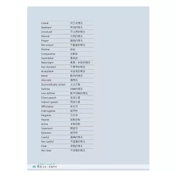 ★完整目錄及索引:完整、層次分明的目錄,搜尋內容便利,更可作為文法大綱使用。書末的中、英文專有名詞索引,增加檢索的效率!