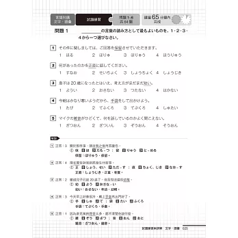 兩回仿照日本語能力測驗(JLPT)規格,從考試題目數、範例題、出題方向、難易度、版型格式、問題用紙、解答用紙、錄音語速、答題時間長短,臨摹真正考場的考試流程,正式上場不緊張。