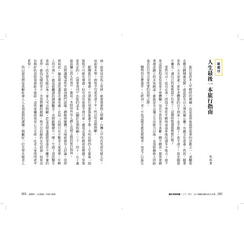 「跟團旅行有導遊,自助旅行則需靠旅遊手冊;名叫長照的人生最後一段旅程不可能有導遊,但有沒有旅遊手冊可看,避免走冤枉路或浪費錢?答案是肯定的,這本書就是一本陪伴所有人踏上長照之路的旅行指南。」──衛福部草屯療養院老年精神科醫生沈政男