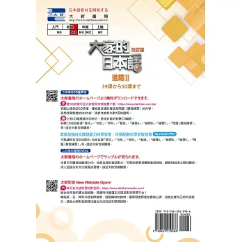 長年廣受各大專院校青睞的《大家的日本語 進階》,力圖全面提升學習者的運用能力,廣集各國日語教育界的建議改訂而成。