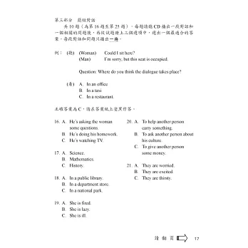 本書「聽力&閱讀」所有試題模式完全COPY真實考試,就連聽力測驗MP3的語調、速度以及各題間隔的答題時間,都仿照真實考試情境,讓你有一種已經進入考場的真實感。
