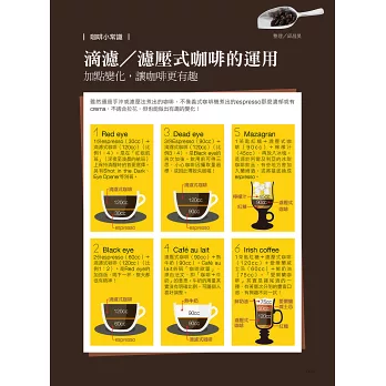 詳細收錄五種咖啡器具的沖煮方式,Step by step最生動易懂的圖示與技巧說明。