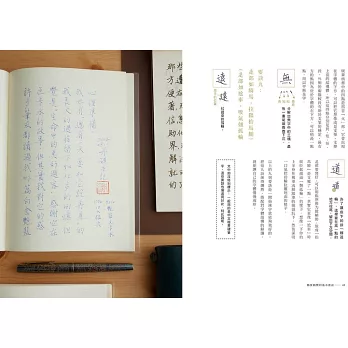 有些時候讀者們會發覺我的寫法好像和別人有點不同?其實那泰半都是為了「容易理解」而做出的改變。我尊重各種不同的結構方式,也經常嘗試各種不同的寫法,畢竟書寫這檔事沒有什麼標準答案。所以練完這本書,能讓人學到的是我整理過的「丹硯式寫法」,學到怎麼架構出這種字體。