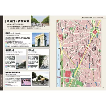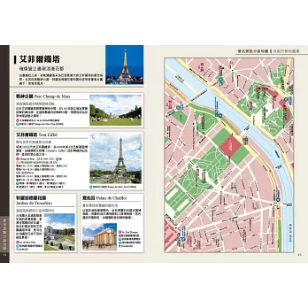 兩種詳盡地圖互相搭配,讓你暢遊凱旋門、艾菲爾鐵塔、巴黎傷兵院、巴士底廣場、萬神殿、盧森堡公園等著名景點周邊,輕鬆順玩必訪景點!