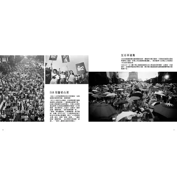 這不僅是一位資深攝影記者的專業積累和生涯報告,一部脈絡清晰又發人深省的社運影像史,更是一段充滿血肉膽識與思想靈魂,鮮明描繪台灣近代政治社會變革的無悔印記。──沈昭良(政治大學兼任助理教授)