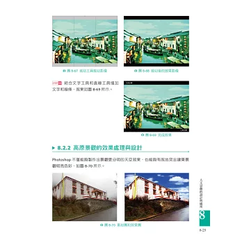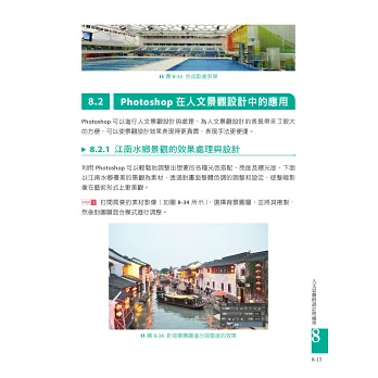 本書共有兩大主軸:第一部分由淺入深地從Photoshop基礎操作開始講解,詳細介紹CS6、CC的新增功能、一般工具、色版與遮色片、影像調整工具、混合模式、濾鏡效果等;第二部分的實務操作上,即以人文景觀、建築設計及空間設計做為練習主題,重點式的進行操作技巧的訓練,給予更多的思考與發揮空間。透過理論結合實例的教學方法,可作為城市景觀規劃、建築設計相關領域的入門精選教材。