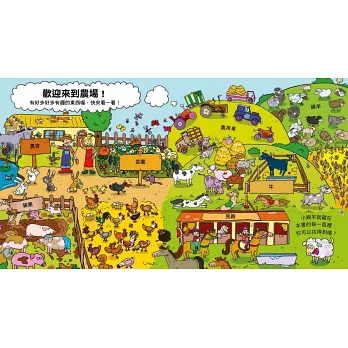 以好玩的找找看活動,搭配寫實的農場場景,讓本書每個跨頁同時具備教育性與啟發性。