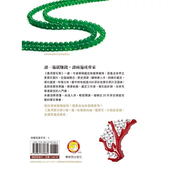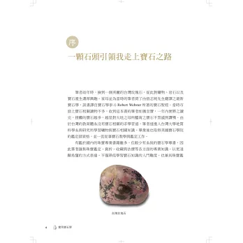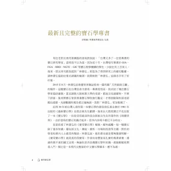 讀者若能熟稔本書,相信必能從中獲得所需的寶石鑑賞知識,並獲得筆者多年來在寶石實務上的經驗傳承,探索寶山且滿載而歸。