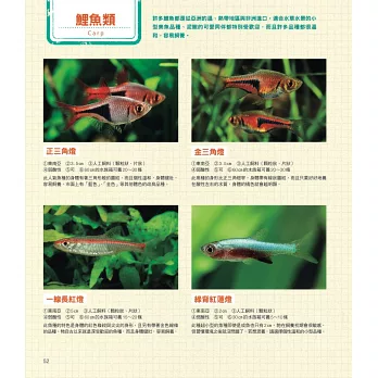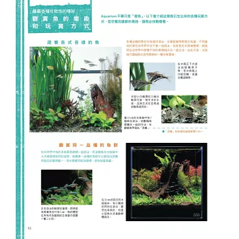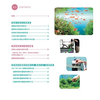 本書從各品種介紹與飼養方法、眾多熱帶魚的品種介紹、繁殖技巧、水族箱佈景,到專業的魚疾處置等……面向多元,深入淺出地呈現出熱帶魚世界的多變樣貌,為飼養熱帶魚不可多得的專業叢書。