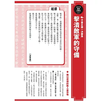 ◎將兵法「圖解化」成40條致勝秘策,並註明原文,列舉現代商業實例,協助活用。
