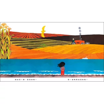 ◎看著大海,對海另一頭的想像也開始膨脹起來。我和孩子共讀時,也會談論世界上其他國家的事,五味太郎的文字簡短,卻讓人回味不已,這是一本能聽到船聲、浪濤聲、遠方人聲的書。上星期在五年級的班上念這本書,無論男孩還是女孩都聽得津津有味呢。
