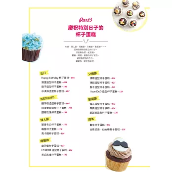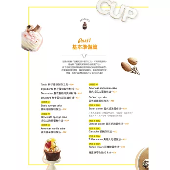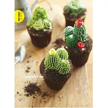 把色彩口味繽紛的鮮奶油,裝飾在巧克力口味的海綿蛋糕上;口感紮實的蛋糕,搭配柔潤滑順的奶油霜,隨心所欲添加的裝飾食材,變成一個個時尚又可愛的杯子蛋糕。