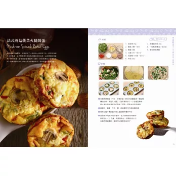 在這本書中所涵蓋的料理種類,可以說是發揮了馬芬烤盤的極大值。對於讀者來說,也是種想像力的訓練。當馬芬烤盤不再侷限於烤馬芬,口味的範疇也不僅止於甜點,可以是鹹食、麵包,甚至延伸至麵食的運用,那進廚房烘焙肯定會替你帶來加倍的樂趣!