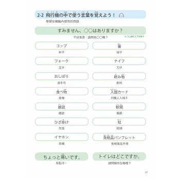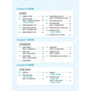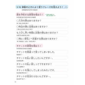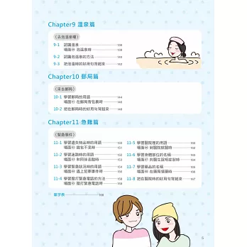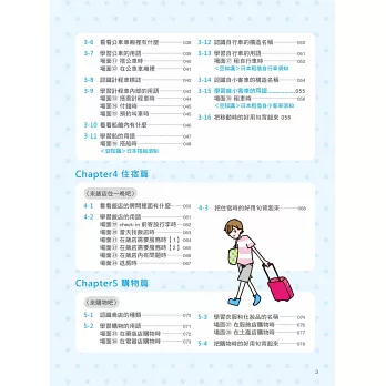 本書將日本旅遊分成〈招呼〉〈空港〉〈移動〉〈住宿〉〈購物〉