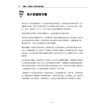 這本書談大數據,也討論統計學,更討論二者之間千絲萬縷的關聯。大數據時代要面對的不僅是技術的變革,還有工作方式和思維模式的變革。統計學本身就是大數據時代的一門重要學科。隨著大數據逐漸走進公眾的視野,統計學也必然會迎來更多的關注。這就意味著,越來越多的非統計學專業人士會瞭解統計學、應用統計學,人們也必然需要更多的統計學讀物。