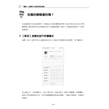 本書行文按照【案例】+【知識點】+【分析】的結構,輔以清晰明瞭的圖解和文字說明,搭配大量講述的應用案例也都和人們的生活息息相關,是想要瞭解大數據應用和統計學的必備入門參考。