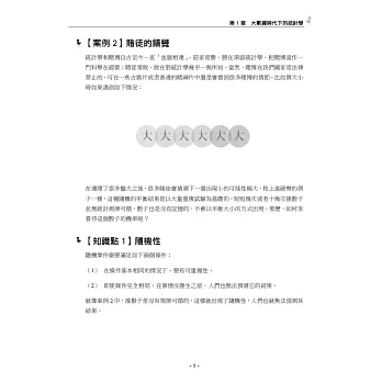 第2章 樣本魅影,重點介紹了統計學最核心的思維,即用樣本資訊推論總體,並和大數據的推論思維進行比較,強調二者在實踐中結合使用的重要性。