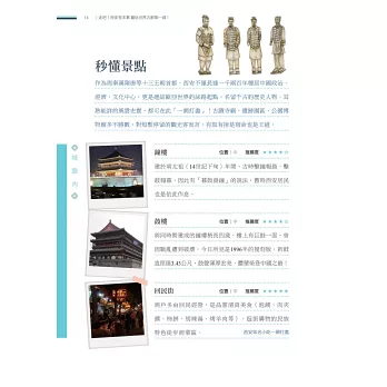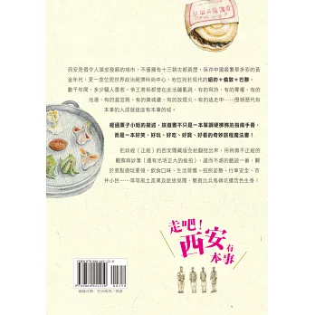 把政經(正經)的西安隱藏版全給翻挖出來,用稍微不正經的觀察與妙筆(還有光明正大的偷拍),謔而不虐的戲說一番,關於景點遊玩要領、飲食口味、生活習慣、拍照姿勢、行車安全、市井小民……等等風土差異及旅途見聞,簡直比兵馬俑坑還活色生香!