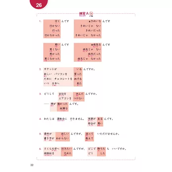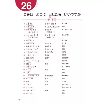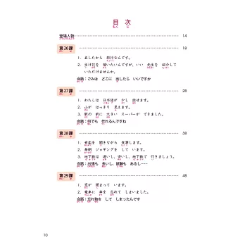 《大家的日本語 進階Ⅰ 改訂版 A4》每課依序為「單字」、「句型」、「例句」、「會話」、「練習A」、「練習B」、「練習C」、「問題」,學習項目淺顯易懂。並依各國日語教育界的建議,修改了部分詞彙與情境,內容符合日常生活,學習者可輕鬆掌握情境。