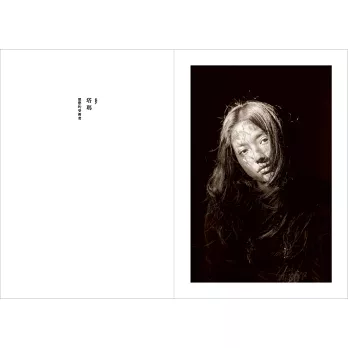 那是一小段只容錯身而過的走廊,一邊是老式的木框窗戶,一邊是陳舊的泥灰牆。馮君藍的〈微塵聖像〉每幅一米多長,兩面各掛四幅肖像,己無多餘空間。照片裡的八雙明眸直透心靈底層,立刻就把我震住了。那已不是容顏的留影,而是靈魂的肖像。