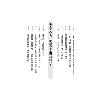 如果這樣仍無法調整心中的預設立場的話,那就試著先往前「看看」哪些是改變後會讓自己覺得害怕、討厭、或不習慣的事物就行了。而照這個方式調整內心原有的「預設立場」就是本書的目的。我要教各位的,正是如何改變「預設立場」。