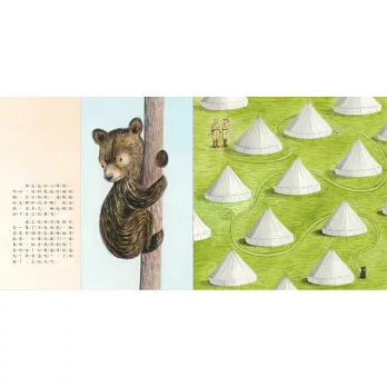 三. 圖像:本書的繪者蘇菲.布雷克爾(Sophie Blackall)以中式水墨和水彩,在熱壓紙上繪製出一幅幅細膩的圖像,靈動的表現出小熊的各種神態,並且細緻的將故事與真實的照片完美結合。