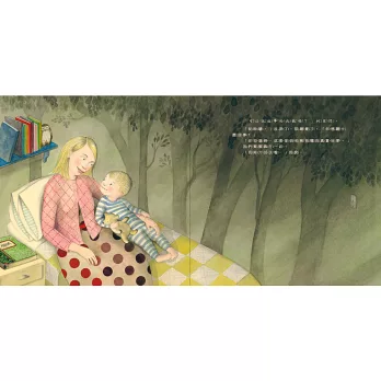 本書由一對母子(作者)講述床邊故事開始,作者用第一人稱、大量的對話開始這個故事,讀者可以想像那就像尋常家庭會見到的畫面,如同你和我的家庭一樣。然而精煉的對話和文字,還有風格溫暖的圖像並沒有令人不悅或是帶來一種「平凡」的瑣碎感覺,反而在文字、故事以及圖像間維持著美妙的平衡,吸引著讀者一直往下讀,並且獲得難以言喻的滿足。